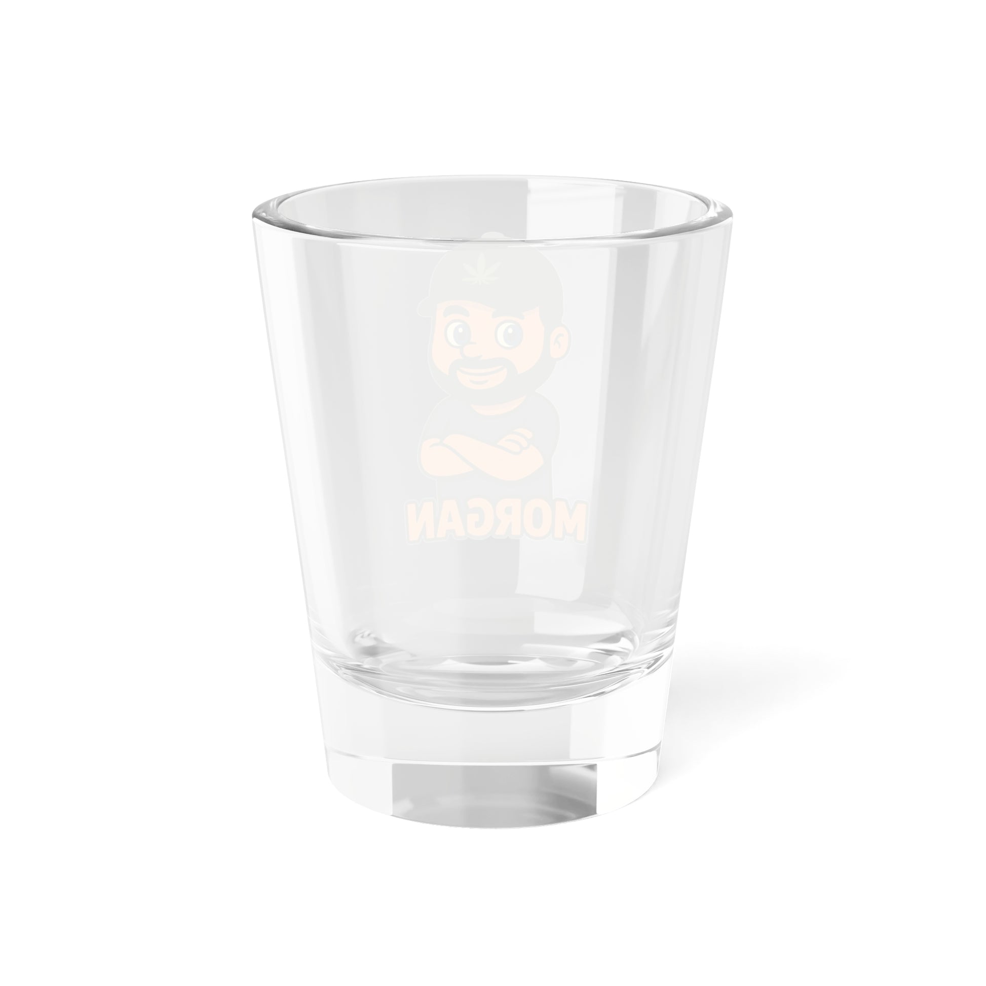 Thick, clear glass with a bold printed character — this 1.5 oz shot glass brings a playful, personalized touch to casual gatherings. The cartoon-style avatar with crossed arms and warm colors sits low on the glass, leaving space above for easy sipping and stacking. The heavy solid base gives it weight and stability so it feels satisfying in hand and less likely to tip during a rowdy toast. Dishwasher-safe and printed with vibrant inks, it holds up to repeated use while keeping the design crisp. Small and sturdy, it slips into a bar caddy or shelf and adds personality to nights with friends, laid-back house parties, or backyard gatherings.